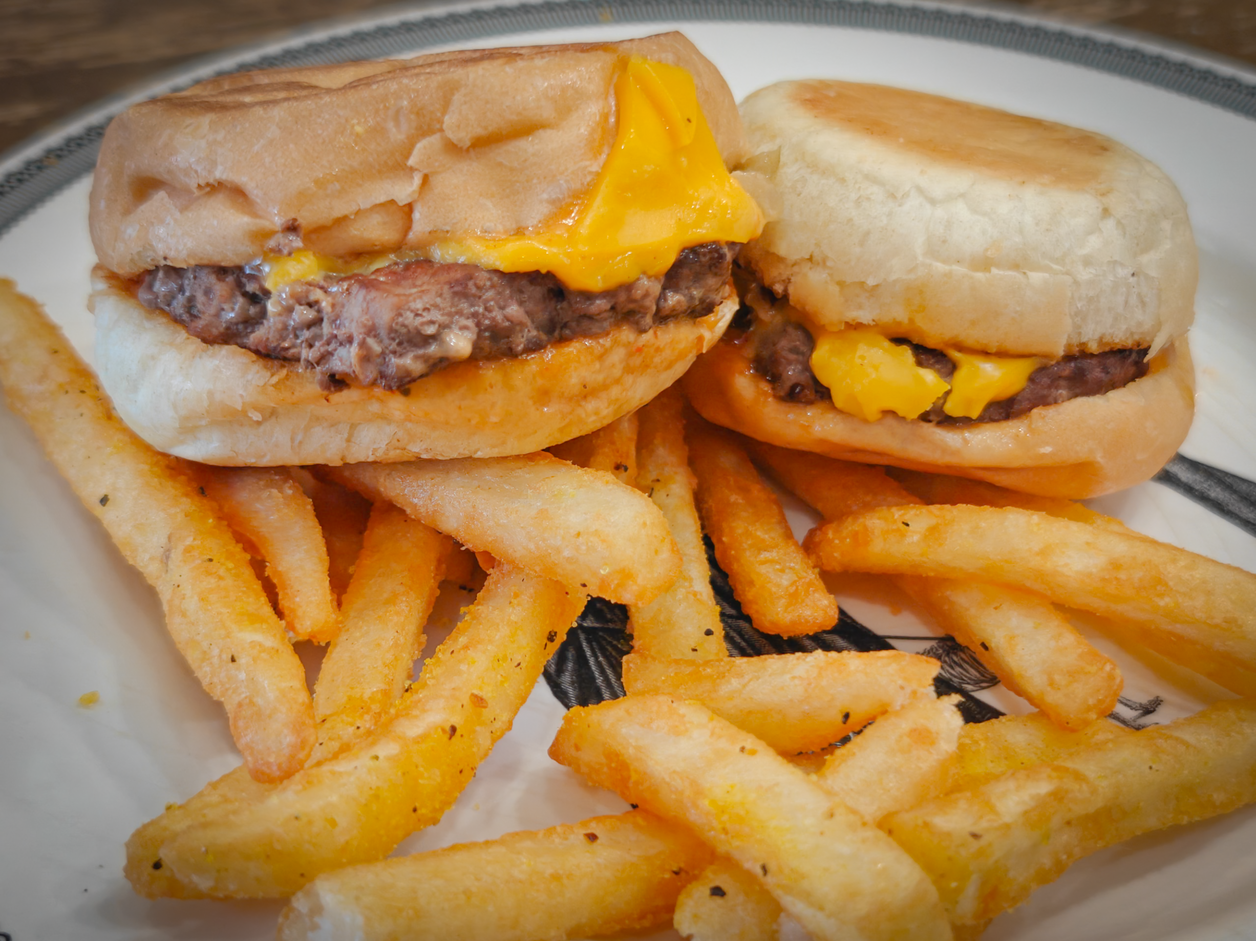 The food was great. The sliders were perfect, cheap, and the buns were spectacular. They were not typical steamed slider buns; they were more like pillowy soft rolls or biscuits even. The fries were tremendous: lemon pepper was the correct play.
